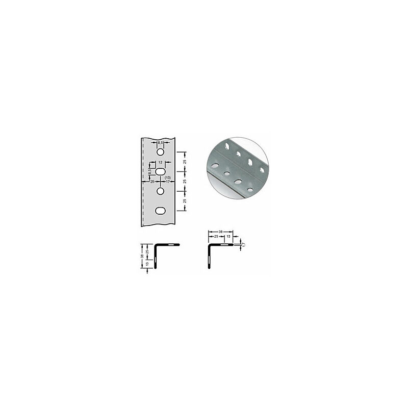 Profilato angolare d'acciaio per sistema modulare, 38 x 38 x 1,7 mm, lunghezza 2 m, zincato, conf. da 10 pezzi. Fornitura = montato. Materiale = acciaio. Lunghezza = 2000 mm. Profilo = profilato angolare. Superficie = zincatura. Passo fori = 25 mm. Dimensioni profilo = 38x38x1,7 mm. Colore = zincatura. Luogo d'impiego = per interni. Tipo di prodotto = profilati componibili per sistema modulare. Per costruzioni personalizzate. Per strutture su misura, come soppalchi da magazzino, palchetti, scale, telai per tavoli, trabattelli e scaffalature. Per costruire scaffali o trabattelli è necessario un numero sufficiente di elementi di raccordo o spessori in lamiera (accessori). Taglio su misura dei profili angolari, con sovrapprezzo, con passo di 25 mm. Le portate dei profili dipendono dalle loro dimensioni e dal loro utilizzo come montanti o traverse. È necessario tenere in considerazione le lunghezze degli angoli e le larghezze libere.