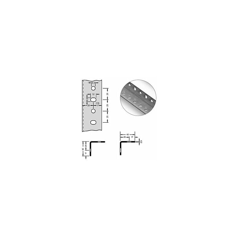Profilato angolare d'acciaio per sistema modulare, 42 x 42 x 2 mm, lunghezza 2,5 m, zincato, conf. da 8 pezzi. Fornitura = montato. Materiale = acciaio. Lunghezza = 2500 mm. Profilo = profilato angolare. Superficie = zincatura. Passo fori = 25 mm. Dimensioni profilo = 42x42x2,0 mm. Colore = zincatura. Luogo d'impiego = per interni. Tipo di prodotto = profilati componibili per sistema modulare. Per costruzioni personalizzate. Per strutture su misura, come soppalchi da magazzino, palchetti, scale, telai per tavoli, trabattelli e scaffalature. Per costruire scaffali o trabattelli è necessario un numero sufficiente di elementi di raccordo o spessori in lamiera (accessori). Taglio su misura dei profili angolari, con sovrapprezzo, con passo di 25 mm. Le portate dei profili dipendono dalle loro dimensioni e dal loro utilizzo come montanti o traverse. È necessario tenere in considerazione le lunghezze degli angoli e le larghezze libere.