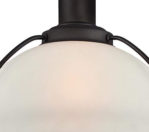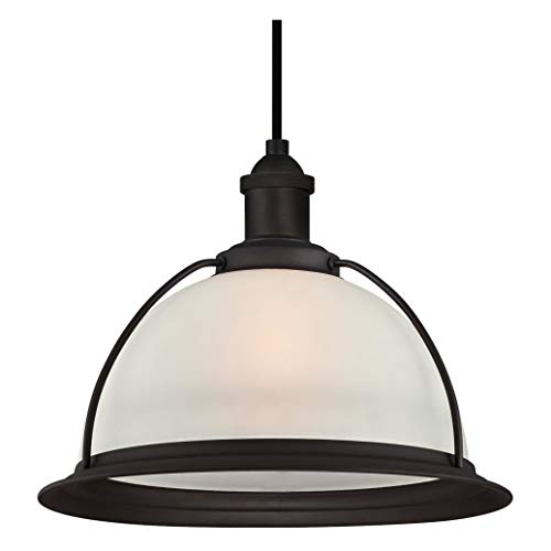 La lampada a sospensione monoluce con paralume in vetro smerigliato soffiato a mano e finitura in bronzo lucidato a olio dona un fascino retro a qualsiasi ambiente
