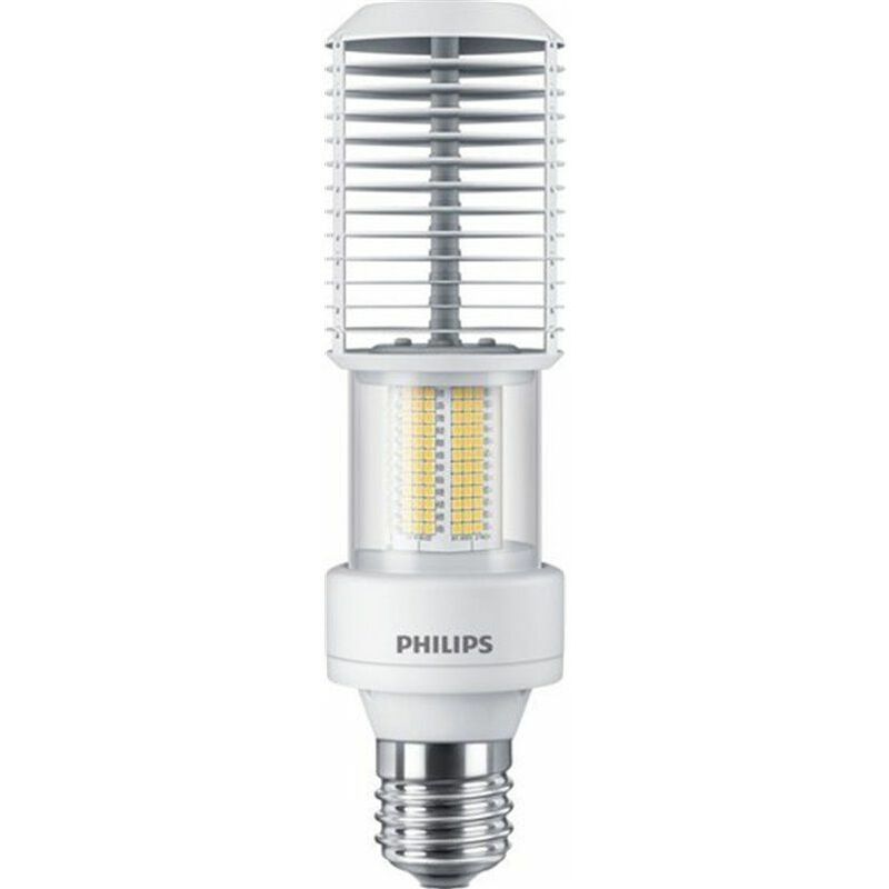 Lampada stradale TForce LED 90-55W E40 740, che offre una soluzione di ammortamento facile e veloce per sostituire le lampade a scarica ad alta intensità (HID). Questi prodotti apportano l'efficienza energetica e i vantaggi di lunga durata dei LED alla sostituzione HID e offrono risparmi immediati con un basso investimento iniziale. Con la corretta distribuzione della luce e le dimensioni della lampada, è facile installare i lampioni a LED TrueForce nei sistemi esistenti senza modificare il ballast o il riflettore dell'apparecchio e migliorare la qualità dell'illuminazione.