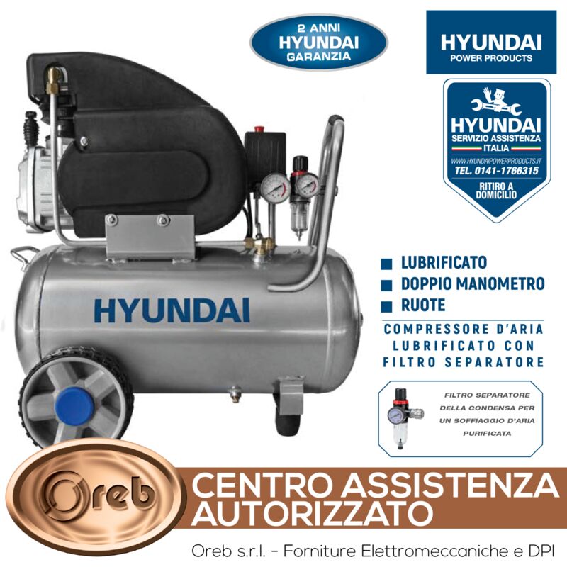 COMPRESSORE ARIA HYUNDAI 65650 LUBRIFICATO CON FILTRO SEPARATORE Utensile adatto per lavori di meccanica, sia per quelli di manutenzione, per il gonfiaggio di pneumatici o per la verniciatura. Caratteristiche: Capacità Serbatoio: 24 L Pressione: 8 bar Potenza: 2,0 HP - 1500W Tensione: 230V / 50 hz Giri minuto: 2850 RPM Aria aspirata: 188 L/m N° Ruote: 2 N° Piedini 1 Peso Netto: 18,5 Kg Dimensioni prodotto: 600x260x580 mm Marca: Huyndai Modello 65650 La nostra azienda è distributore ufficiale del marchio HYUNDAI ITALIA Visitate il nostro negozio per altre favolose offerte Effettuare un acquisto presso il nostro negozio significa garantirsi un prodotto con o . La fattura va richiesta subito dopo l´acquisto comunicandoci tutti i dati societariattraverso messaggio Il pagamento può essere effettuate scegliendo uno dei metodi da noi accettati: PAYPAL (e quindi qualsiasi carta di credito accettata da questo circuito) BONIFICO BANCARIO - CONTRASSEGNO . Il pagamento PAYPAL è immadiato, sicuro