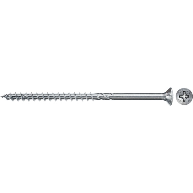 La fischer Power-Fast II FPF II CZP BC è una vite zincata passivata blu con filettatura parziale e slot Phillips PZ 2. La zincatura galvanica non contiene alcun contenuto di cromo VI ed è quindi molto rispettosa dell''ambiente. La vite con testa svasata può essere incassata a filo con la superficie nel legno. Il Power-Fast II con rivestimento in cera ad alte prestazioni riduce la coppia avvitabile e consente anche di avvitare vicino al bordo senza problemi. La vite truciolare ha un comportamento di apertura significativamente ridotto rispetto ad altre viti disponibili in commercio. La filettatura parziale lunga 36 mm consente di tirare insieme gli elementi in legno. La vite truciolare è adatta per il fissaggio di componenti portanti in legno rivestito, legno duro, legno tenero e per connessioni in legno o connessioni di parti metalliche su legno, come raccordi metallici, angoli, scarpe trave e altre connessioni in metallo e legno.
