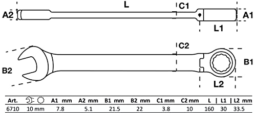 BGS 6710 | Chiave combinata a cricchetto | regolabile | 10 mm