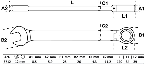 BGS 6712 | Chiave combinata a cricchetto | regolabile | 12 mm