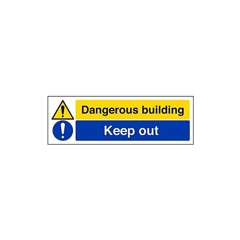 V Safety, 67143AX R, cartello di pericolo che indica un edificio pericoloso, in plastica rigida spessa 1 mm, a orientamento orizzontale, 300 mm x 100 mm, nero/blu/giallo 300 mm x 100 mm