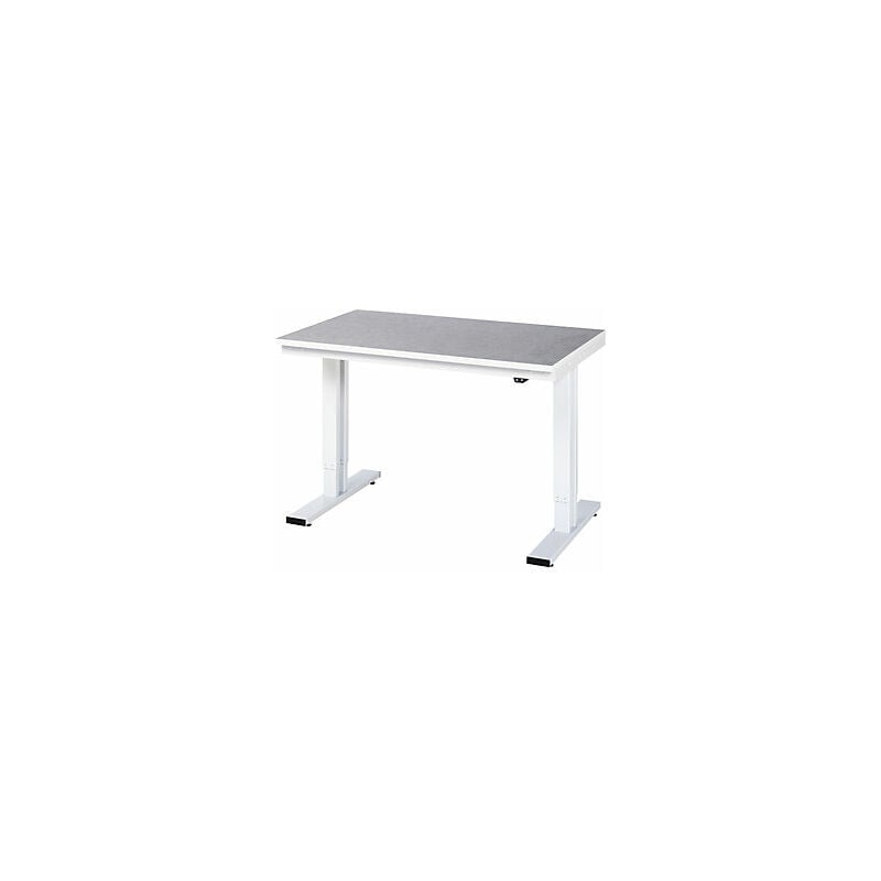 Tavolo da lavoro, con altezza regolabile in modo elettrico, altezza 720 - 1120 mm, rivestimento in linoleum, largh. x prof. 1250 x 800 mm. Fornitura = montato. Tipo di piano = rivestimento in linoleum. Larghezza piano = 1250 mm. Profondità piano = 800 mm. Versione telaio = con base per la messa in piano. Portata statica = 300 kg. Altezza di lavoro = 720 - 1120 mm. Tipo di regolazione dell'altezza = regolazione elettrica dell'altezza. Spessore piano = 25 mm. Materiale telaio = acciaio, verniciato a polvere. Colore telaio = grigio chiaro RAL 7035. Tipo di prodotto = tavoli da lavoro, con altezza regolabile in modo elettrico. Azionamento lineare integrato per una regolazione sincronizzata e silenziosa (400 mm). Piedini per la messa in piano per compensare le irregolarità del pavimento. Massima ergonomia in caso di alternanza di lavoro da seduti e in piedi. Ideali per il lavoro su turni e in officine e stabilimenti di produzione. Gambe del telaio adatte anche a rotelle pivottanti (vedi
