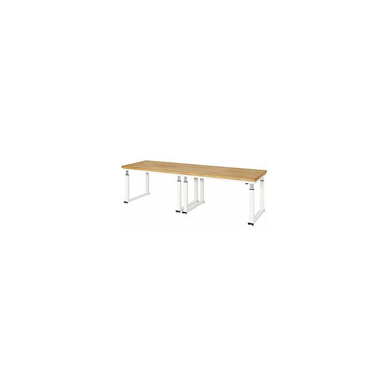 Tavolo da lavoro, con altezza regolabile in modo elettrico, altezza 740 - 1140 mm, piano in faggio massello, largh. x prof. 3000 x 900 mm. Fornitura = montato. Tipo di piano = piano in faggio massello. Larghezza piano = 3000 mm. Profondità piano = 900 mm. Versione telaio = con base per la messa in piano. Portata statica = 600 kg. Altezza di lavoro = 740 - 1140 mm. Tipo di regolazione dell'altezza = regolazione elettrica dell'altezza. Spessore piano = 40 mm. Materiale telaio = acciaio, verniciato a polvere. Colore telaio = grigio chiaro RAL 7035. Tipo di prodotto = banchi da lavoro con regolazione elettrica dell'altezza. 4 colonne di sollevamento. Altezza di lavoro 740 - 1140 mm. Portata statica max 600 kg. Azionamento lineare integrato per una regolazione sincronizzata e silenziosa (400 mm). Portata max 150 kg. Massima ergonomia in caso di alternanza di lavoro da seduti e in piedi. Ideali per il lavoro su turni e in officine e stabilimenti di produzione. Gambe del telaio adatte anche a