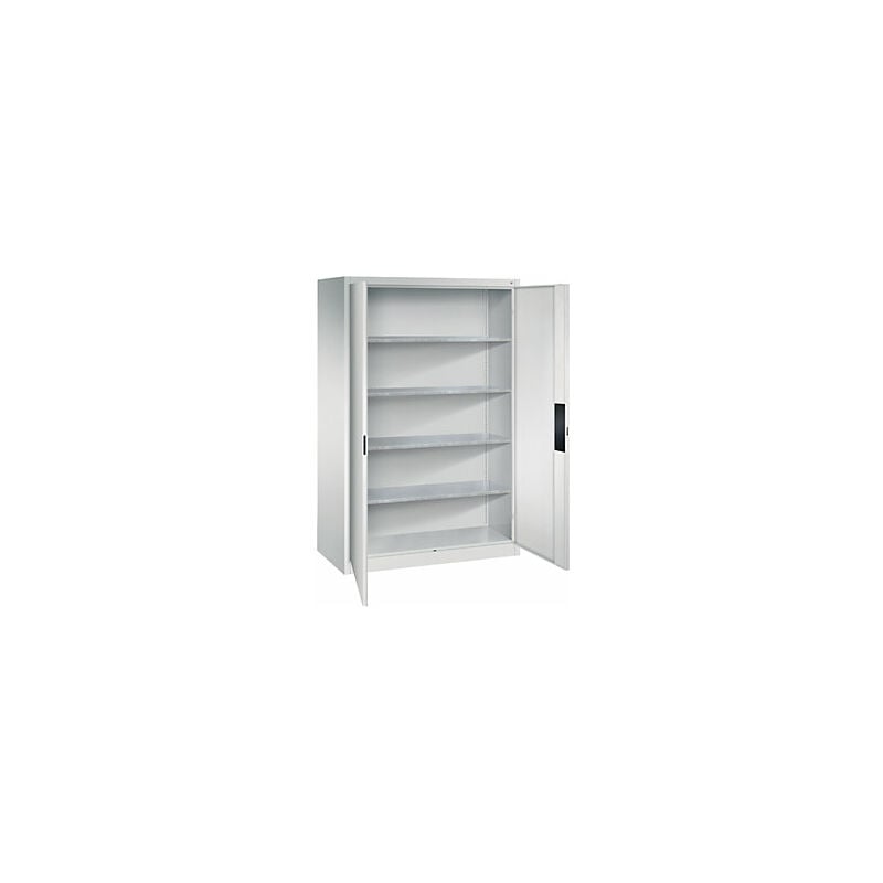 Armadio da officina per carichi pesanti, larghezza 1200 mm, profondità 600 mm, anta grigio chiaro. Fornitura = montato. Altezza = 1950 mm. Larghezza = 1200 mm. Profondità = 600 mm. Larghezza interna = 928 mm. Altezza interna = 1840 mm. Profondità interna = 553 mm. Altezza zoccolo = 100 mm. Struttura = con saldatura. Portata struttura = 700 kg. Materiale corpo = acciaio. Materiale porta = acciaio. Superficie = con verniciatura a forno. Materiale ripiani = acciaio, zincato. Colore corpo = grigio chiaro RAL 7035. Colore porta = grigio chiaro RAL 7035. Portata per ripiano = 110 kg. Numero ripiani = 4 pz. Passo di regolazione altezza ripiani = 15 mm. Tipo di porta = anta a battente. Angolo di apertura delle porte = 180 °. Ampi armadi supercapienti - adatti per lo stoccaggio di merci grandi e ingombranti. Portata elevata di ogni ripiano zincato: 110 kg. Portata struttura 700 kg. Angolo di apertura ante circa 180°. Serratura brevettata Ergo-Lock 4.0 di facile uso, con 2 chiavi. Ripiani