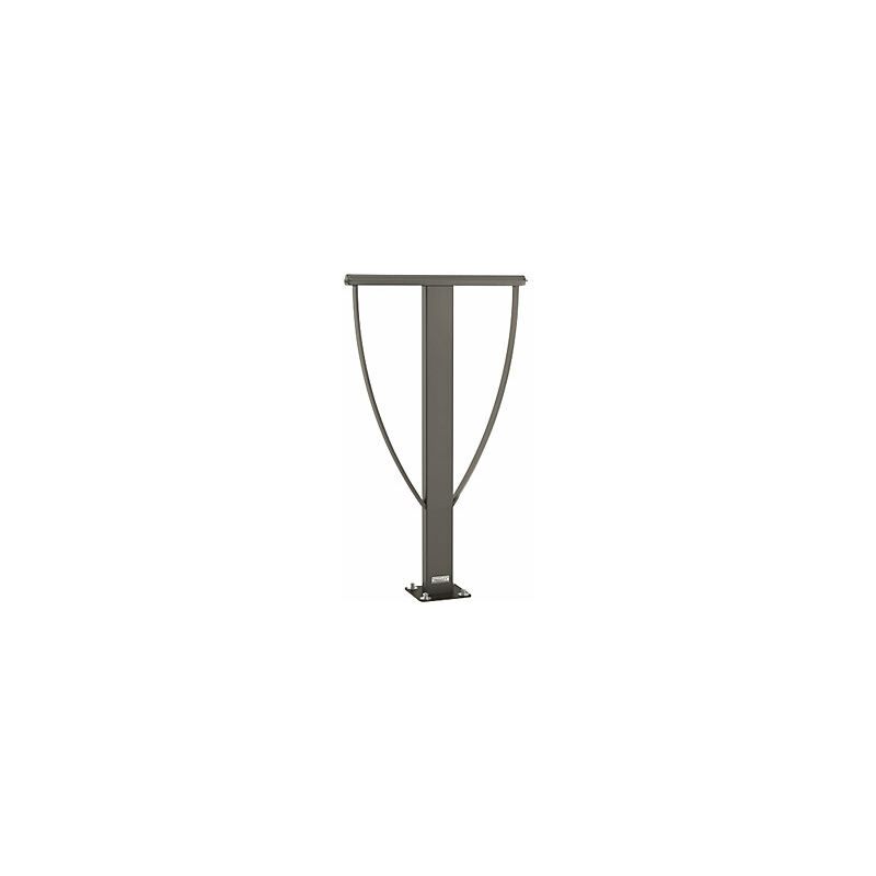 Rastrelliera per biciclette LISSABON, su piastre di base, grigio. Fornitura = smontato. Materiale = acciaio. Superficie = zincatura a fuoco e verniciatura. Altezza totale = 900 mm. Larghezza totale = 505 mm. Profondità totale = 40 mm. Tipo di fissaggio = pianale. Colore = grigio. Altezza da terra = 900 mm. Tipo di prodotto = staffe per biciclette. Montaggio: su piastra di base. Altezza dal suolo: 900 mm. Struttura: tubo d'acciaio 80 x 40 mm. Una rastrelliera salvaspazio per fissare contemporaneamente il telaio e la ruota delle biciclette. Il complemento ideale della ringhiera con corrimano LISSABON.