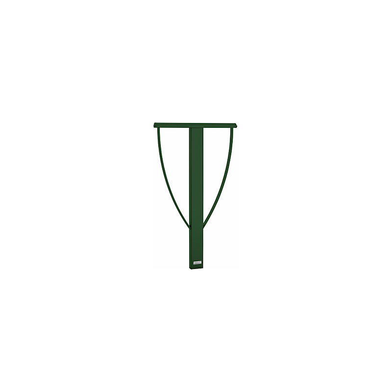 Rastrelliera per biciclette LISSABON, da annegare nel cemento, verde muschio. Fornitura = smontato. Materiale = acciaio. Superficie = zincatura a fuoco e verniciatura. Altezza totale = 900 mm. Larghezza totale = 505 mm. Profondità totale = 40 mm. Tipo di fissaggio = da annegare nel cemento. Colore = verde muschio RAL 6005. Altezza da terra = 900 mm. Tipo di prodotto = staffe per biciclette. Montaggio: da annegare nel cemento. Altezza dal suolo: 900 mm. Struttura: tubo d'acciaio 80 x 40 mm. Una rastrelliera salvaspazio per fissare contemporaneamente il telaio e la ruota delle biciclette. Il complemento ideale della ringhiera con corrimano LISSABON.