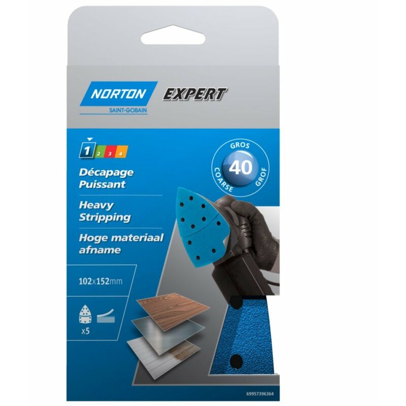 Pattini Multi smerigliatrici Grana ossido di alluminio Lunga durata di vita Auto agrippants Grana norzon per un alto potere di taglio, carta pesante più resistente Papier auto-agrippant 11 trous en corindon HAUTE QUALITE pour ponçage à sec sur bois, agglomérés, peintures et métaux. Dimensions: 102 x 152 mm, grain: 40.