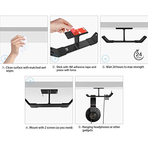 Salvaspazio (risparmio di spazio): non utilizzare spazio sulla scrivania sotto il desk design, per riporre cuffie, cavi USB o altri dispositivi. Mantenete le vostre cuffie vicino e organizzate. Perfetto per la casa e l'ufficio.