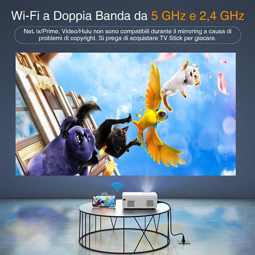 6D/4P Keystone Elettrico - Proiettore 5G WiFi Bluetooth, VOPLLS 12000L Proiettore Portatile 4k Supporto 1080P Nativo, ±50°Zoom, PPT, Videoproiettore Home Cinema per TV Box/USB/PC/iOS/Android.