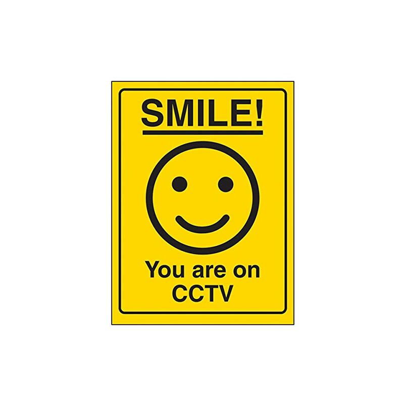 V Safety, 6E063AN-RY, Cartello con uno smile e la scritta Smile! You are on CCTV, 150 mm x 200 mm, in plastica rigida 150mm x 200mm