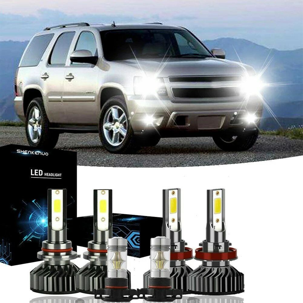 6pcs 12V 6000K LED Headlight + Fog Light Bulbs F2 For Chevy Suburban Tahoe 2007-2014 Adjustable Car Auto Replacement Accessories