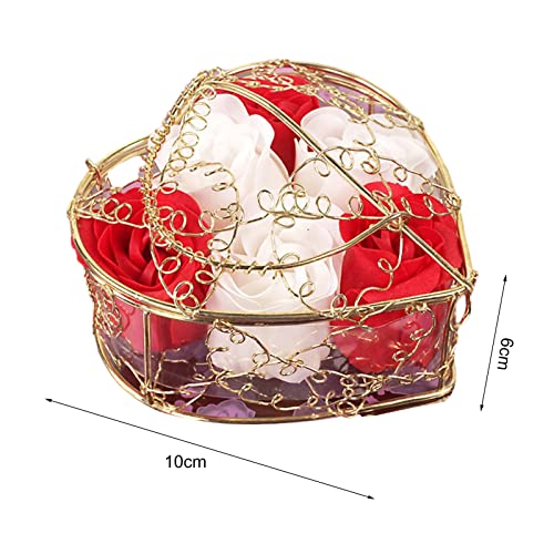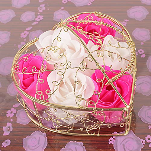 6Pcs Bathr sapone di petali di rosa a forma di fiore, pianta artificiale sapone profumato rosa ferro regalato scatola per ragazze rosa e bianco 1size