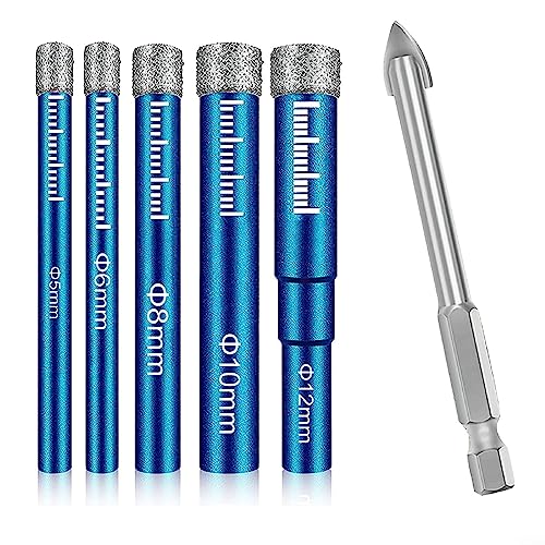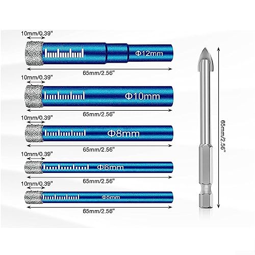5Pcs Set Of Ceramic Tile Drill Bits And 6mm Silver Triangular Diamond:professional diamond drill bit, universal round drill shank, suitable for a wide range of models, stable clamping.