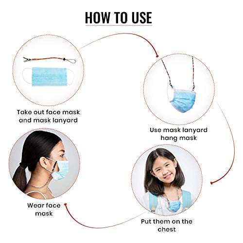 Praticità: il cordino può essere tenuto saldamente al collo quando non è in uso, perfetto per fare commissioni, mangiare un boccone, conversazioni socialmente distanti o telefonate. Agganciare il piccolo gancio alla fascia elastica della fodera. Basta farlo scivolare sulla testa come occhiali con gli occhiali, quindi indossarlo come una collana.