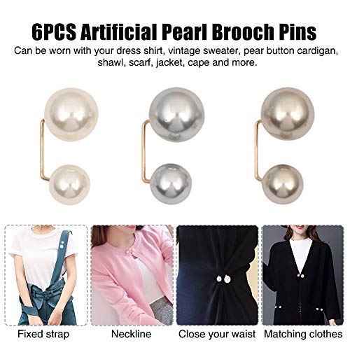 6pcs Faux Pearl Spilla Elegante Perla di Sicurezza Pin Stili Moda Maglione Scialle Clip di Sicurezza per Donne Ragazze Abbigliamento Decorazione Regali (3 colori)