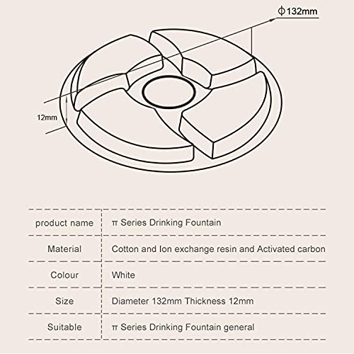 6 pezzi di sostituzione del filtro per fontana BPS, la dimensione è: diametro 132 mm, lo spessore è 12 mm.