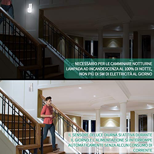 6PCS Luce Notturna Con Sensore Crepuscolare, Automatiche Luce Notturna Led Da Presa, 3 Modalità (AUTO/ON/OFF) Plug-In Risparmio Energetico Luce Per Camera Da Letto, Bagno, Corridoio, 0.5W-Bianco