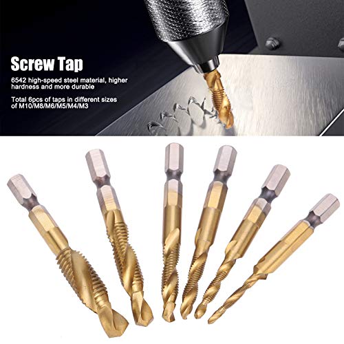 6pcs rubinetto a vite, 6542 kit punte per trapano a spirale in acciaio ad alta velocità M10 M8 M6 M5 M4 M3 utensili per maschiatura, kit punte per trapano utensile(Long Type)