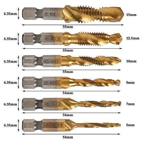 [Facile da usare]: ogni trapano è inciso con le sue dimensioni, il che è comodo per scegliere la dimensione giusta a colpo d'occhio. Adatto per maschiatura macchine come trapani a mano, trapani a percussione, trapani da banco e cacciaviti elettrici.