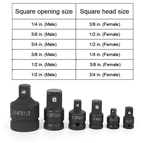 6Pcs/Set Set di Adattatori per Riduttore per Presa di Impatto 1/2in 1/4in 3/8in 3/4in Set di Adattatori per Presa di Impatto Set di Adattatori per Manicotto Pneumatico Quattro