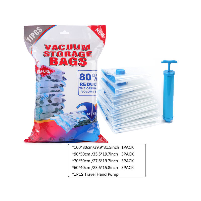 11PCS di Vuoto Sacchetto di Vuoto Riutilizzabile Borse Contenitore Per Il Panno Del Sacchetto Compresso Con Pompa A Mano Viaggio Save Space Seal Coperta Organizzatore Caratteristiche:Compressa oggetto: trapunta, cappotto del cotone, cuscino, cuscino peluche giocattolo, ecc.Funzione: a prova di umidità, a prova di insetto, resistente alla polvere, impermeabile, classificati di stoccaggio, ecc.Specifica:Materiale: PET + PE11PCS Set:* 100*80cm/39.9*31.5inch 1PACK* 90*50cm /35.5*19.7 pollici 3PACK* 70*50cm /27.6*19.7 pollici 3PACK* 60*40cm /23.6*15.8 pollici 3PACK* 1PCS Viaggi Pompa A Mano7PCS Set:* 70*50cm /27.6*19.7 pollici 6PACK* 1PCS Viaggi Pompa A Mano9PCS Set:* 100*80cm/39.9*31.5 pollici 2PACK* 80*60cm /31.5*23.6 pollici 3PACK* 60*40cm /23.6*15.8 pollici 3PACK* 1PCS Viaggi Pompa A Mano