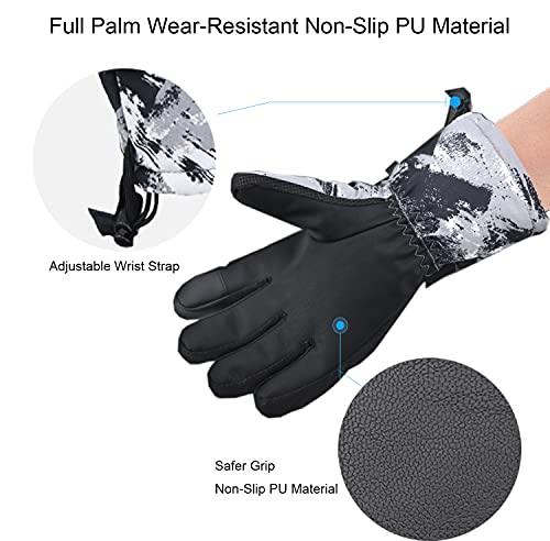 7-Mi Guanti da sci invernali, guanti da neve touchscreen per bambini Guanti da snowboard impermeabili foderati in pelle con polsini lunghi per ragazzi e ragazze Sport Giochi all'aperto