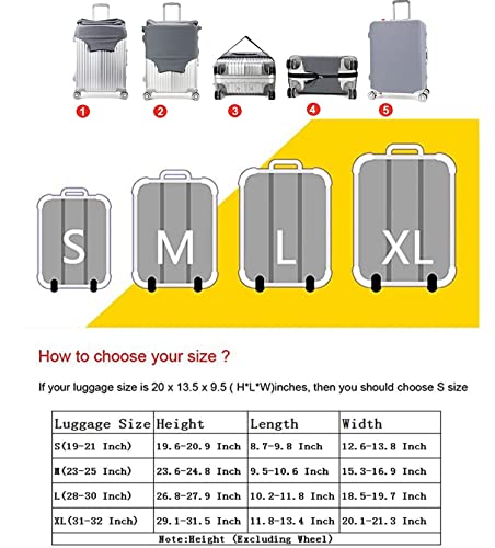 Veloce da sistemare e rimuovere in pochi secondi, resistente e lavabile, dimensioni S / M / L / XL disponibili per adattarsi ai bagagli