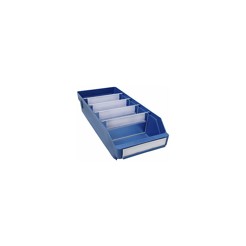 Cassettina per scaffali in polipropilene ad alta resistenza, blu, lungh. x largh. x alt. 400 x 180 x 95 mm, conf. da 20 pz. Fornitura = montato. Materiale = polipropilene. Lunghezza esterna = 400 mm. Larghezza esterna = 180 mm. Altezza esterna = 95 mm. Colore = blu. Resistenza alle temperature = da -20 °C fino a +80 °C. Versione impugnature = maniglie. Numero max divisori long. / trasv. utilizzabili = - / 4 pz. Tipo di prodotto = cassettine per scaffali. Impugnature per una presa sicura. Per divisori trasversali e sicure antiribaltamento vedi Accessori. Cassettine per scaffali disponibili anche in ESD. Richiedere informazioni.