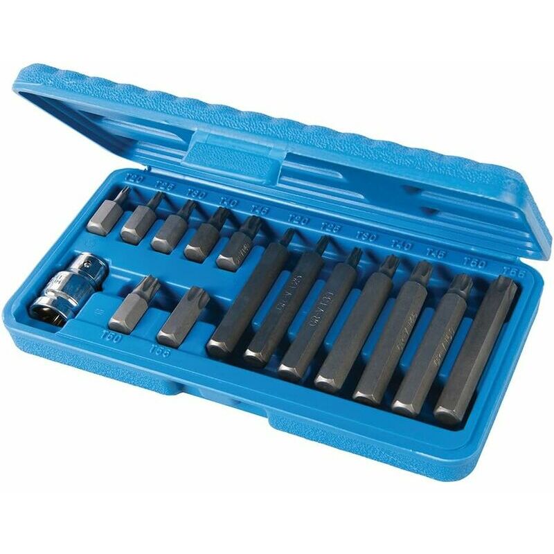 Bussola 1/2 in cromo vanadio Punte trx da 30 mm: T20, T25, T30, T40, T45, T50 e T55 Punte trx da 75 mm: T20, T25, T30, T40, T45, T50 e T55 Presentato in una custodia