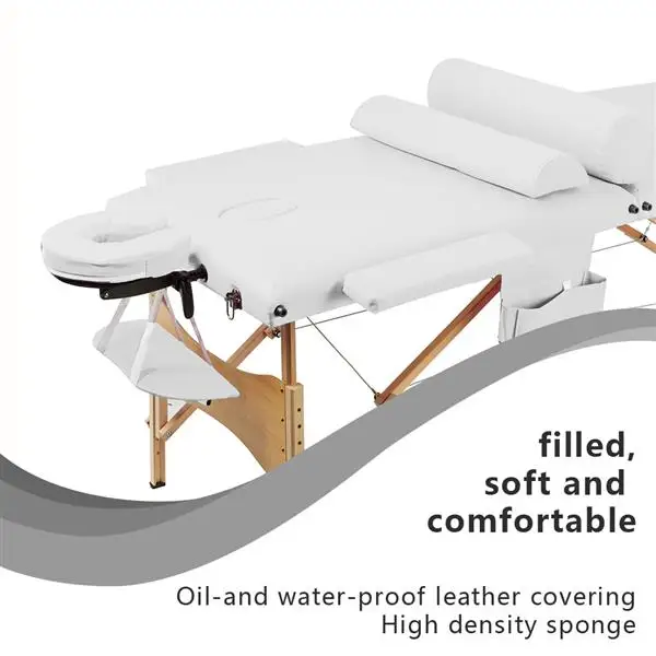 70cm 3 Sections Folding Portable SPA Bodybuilding Massage Table Set Beauty Bed for Professional Salon Furniture White/Pink Color