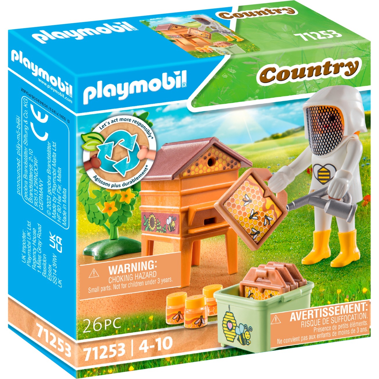 Le api sono tra gli impollinatori più importanti e sono di enorme importanza per il nostro ecosistema. Le api mellifere si nutrono principalmente di succhi vegetali dolci come il nettare e vivono insieme in colonie. Gli apicoltori si occupano della custodia, dell''allevamento e della riproduzione delle api mellifere e della produzione di miele. Con il playset PLAYMOBIL Apicoltore, i bambini possono immergersi nell''entusiasmante mondo dell''allevamento delle api e della produzione di miele.