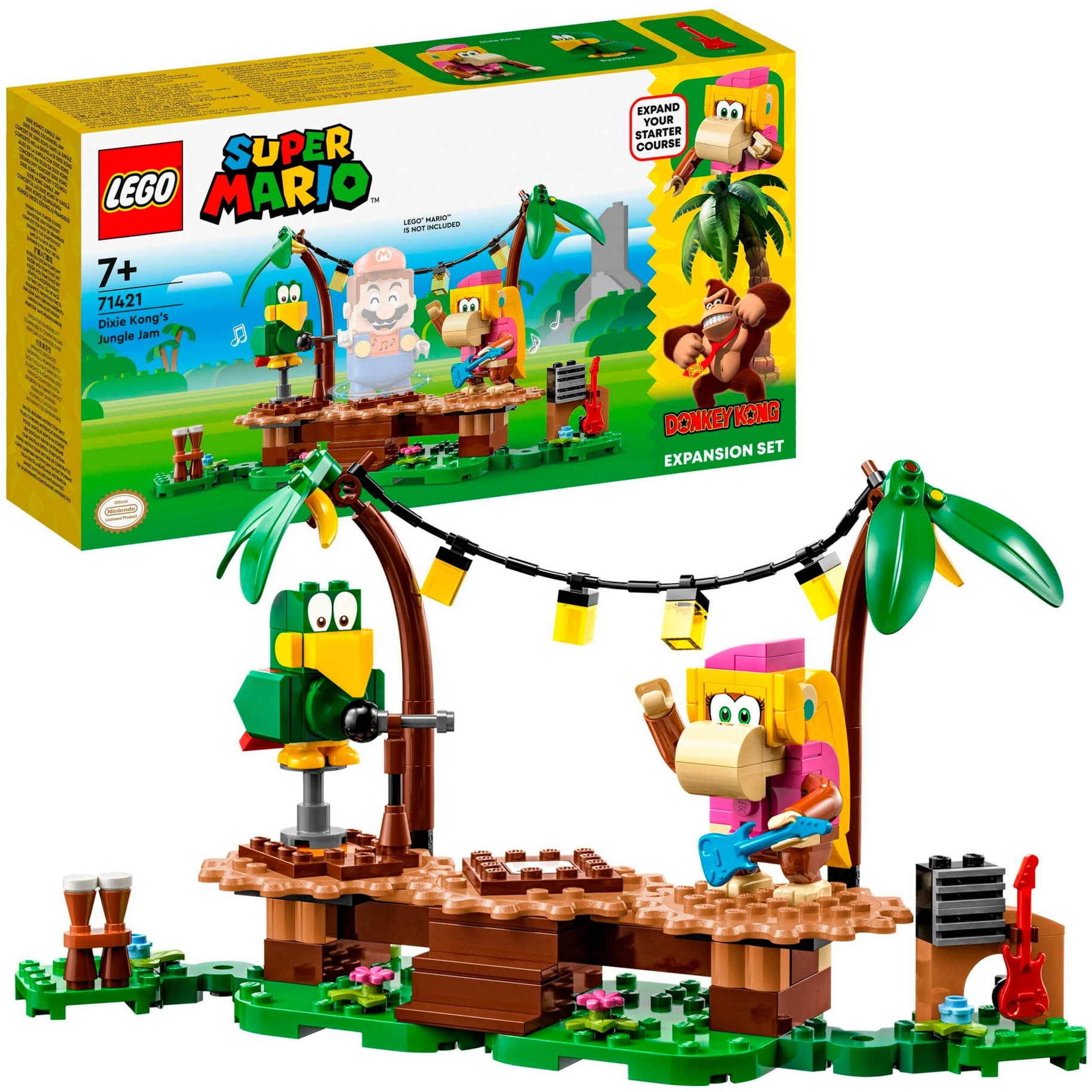 Con questo set di espansione, LEGO Super Mario diventa musicale. Il set include Dixie Kong e Parrot Squawks, un palcoscenico costruibile, un''ambientazione nella giungla, strumenti musicali e attrezzature. Se il personaggio interattivo Mario, Luigi o Peach (non incluso) viene posizionato sul palco e il palco viene ruotato, i personaggi suonano musica. Questo set di espansione è composto da 174 pezzi ed è completamente utilizzabile solo insieme a un set iniziale.
