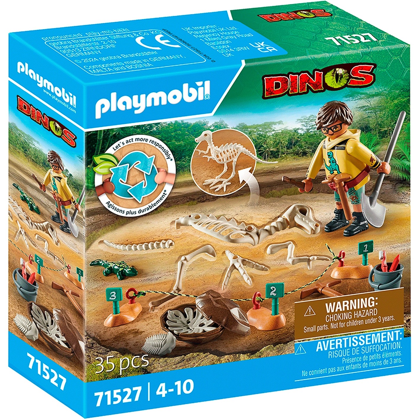 Scoperte entusiasmanti nel mondo di PLAYMOBIL Dinos! Questo mondo di dinosauri PLAYMOBIL offre ai bambini a partire dai 4 anni l''opportunità di immergersi nell''affascinante mondo delle lucertole giganti. Ogni set della serie contiene schede di conoscenza sui dinosauri che contiene. Con questo set, viene alla luce una scoperta sensazionale. Il paleontologo esamina i vecchi resti ossei con una spazzola, una zappa, una pala e un secchio e scopre gradualmente uno scheletro completo.