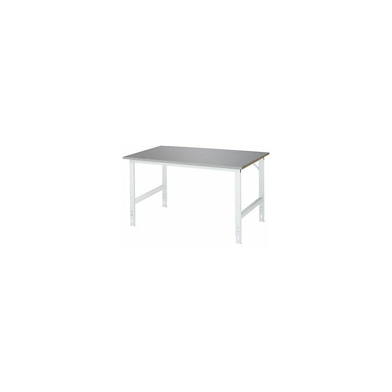 Tavolo da lavoro, regolabile in altezza, altezza 760 - 1080 mm, piano in acciaio inox, largh. x prof. 1500 x 1000 mm. Fornitura = in parte smontato. Larghezza piano = 1500 mm. Profondità piano = 1000 mm. Portata statica = 500 kg/m². Altezza di lavoro = 760 - 1080 m. Tipo di regolazione dell'altezza = manuale. Materiale telaio = acciaio, verniciato a polvere. Tipo di prodotto = banchi da lavoro. Con telaio a 4 gambe in tubi d'acciaio profilato verniciato a polvere (dimensioni gambe: 60 x 30 mm). Piano di lavoro in MDF molto robusto e resistente al calore con rivestimento in acciaio inox 1.4301 (V2A), spessore 25 mm. Portata max 500 kg. Lavorare in modo ergonomico grazie al tavolo regolabile manualmente in altezza. Ideali per lavori impegnativi in officine e stabilimenti di produzione. Gambe del telaio adatte anche a rotelle pivottanti (vedi accessori). Vasta gamma di accessori per allestimento individuale. Robusto e funzionale telaio in tubi d'acciaio profilati con gambe, traverse