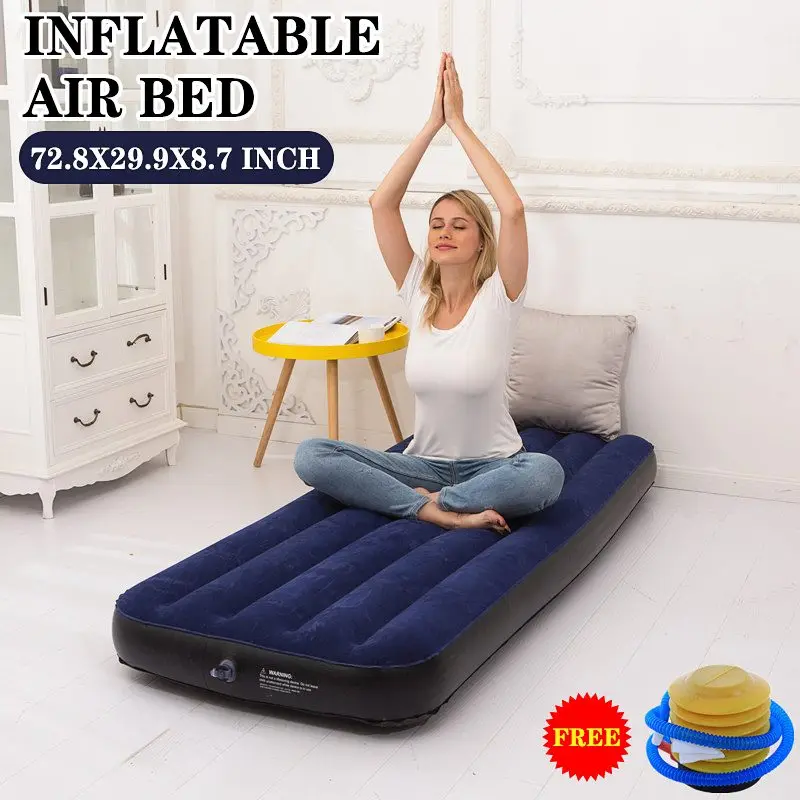 72inch Single Inflatable Flocked Air Bed Mattress Couch Sofa Camping for Home Outdoor Sports Yoga Fitness Portable Bed Mattress