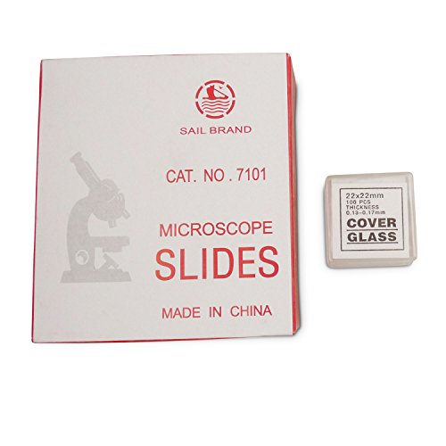 Pacchetto di 72 pre-cleaned in vetro trasparente bianco vetrini da microscopio & 100 pezzo di 22 mm x mm quadrato in vetro coprioggetto