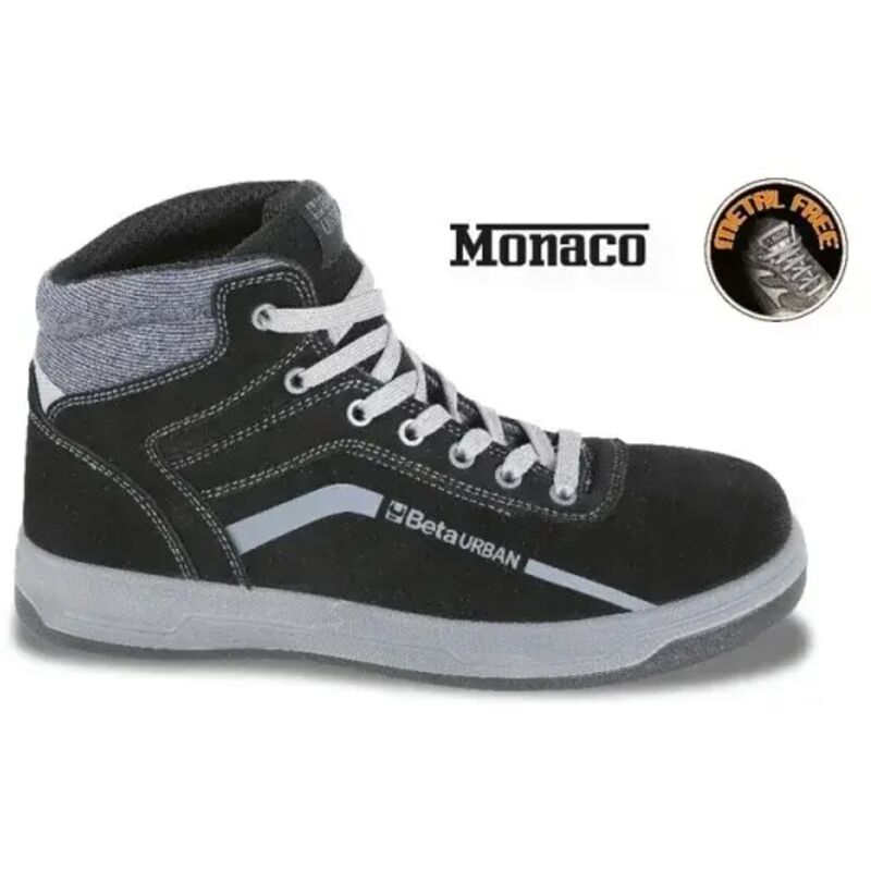 Le scarpe alte Beta 7368UN Urban sono realizzate in pelle scamosciata idrorepellente con collare in morbido tessuto con imbottitura per la protezine del malleolo.Le calzature di sicurezza Beta Monaco sono fornite con puntale e lamina antiperforazione in composito che garantiscono leggerezza e comodità durante l'utilizzo. Materiale: Pelle scamosciata Lamina antiperforazione: Fibra composita Puntale: Composito Tipologia: Scarpe alte Resistenza alle flessioni: > 60.000 Resistenza suola: Olii, idrocarburi e solventi Normativa Europea: S3 SRC Certificazione: EN ISO 20345:2011 Metal Free: Si Suola antiscivolo: Si Assorbimento energia: Tallone Chiusura: Stringhe Idrorepellente: Si Colore: Nero Tipologia suola: Poliuretano bidensità Dissipazione cariche elttrostatiche: Antistatica