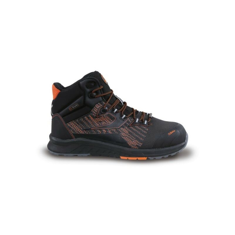 Tomaia • Tessuto in tessuto estremamente resistente all'abrasione • Inserti in TPU (Poliuretano Termoplastico) • Supporto di stabilità tallone • Allacciatura tradizionale • Calzata ampia • Impermeabile, con membrana con sistema bootie, antivento ed estremamente traspirante Suola • Intersuola in EVA (Etilene Vinil Acetato) • Battistrada in gomma nitrilica ad alta resistenza, per maggior resistenza allo scivolamento Protezione • Puntale in materiale polimerico, resistente fino a 200 Joule • Lamina antiperforazione in fibra composita con trattamenti ceramici Sottopiede Sottopiede EVA FOAM (schiuma di polimeri densa) con cuscinetto ammortizzante nella zona del tallone che aiuta a prevenire e attenuare i dolori di chi, per lavoro, passa lunghi periodi in piedi o cammina molto Peso 550 g Taglie EU: 38-48 UK: 5-13