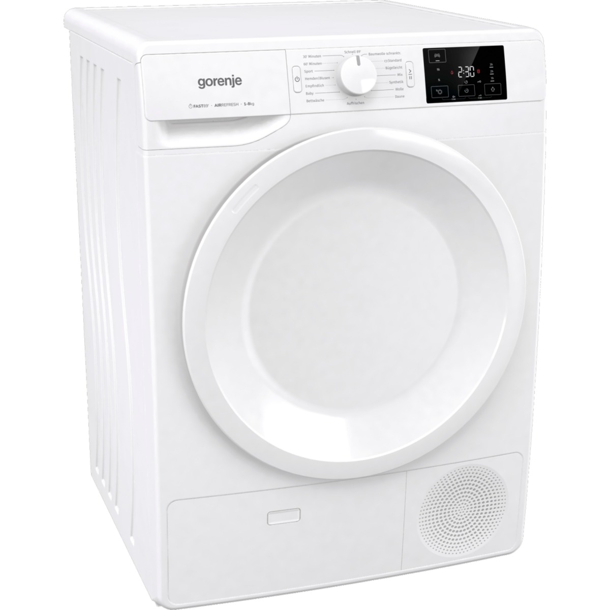 L''essiccatore a condensazione gorenje DNE8B in bianco convince con una capacità fino a 8 kg di biancheria e 16 programmi di asciugatura. La classe di efficienza di condensazione A garantisce un''umidità notevolmente inferiore negli ambienti. Utilizzando il pannello di controllo trasparente con tog del programma posizionato centralmente, il processo di asciugatura può essere avviato in soli tre passaggi. Il display fornisce informazioni affidabili sul tempo rimanente del programma di asciugatura selezionato. AirRefresh assicura un rapido aggiornamento del bucato e grazie alla protezione antirughe hai meno lavoro di stiratura. Per una sicurezza ottimale in casa, il DNE8B è dotato di un blocco di sicurezza per bambini e di un segnale quando il serbatoio di condensazione è pieno.