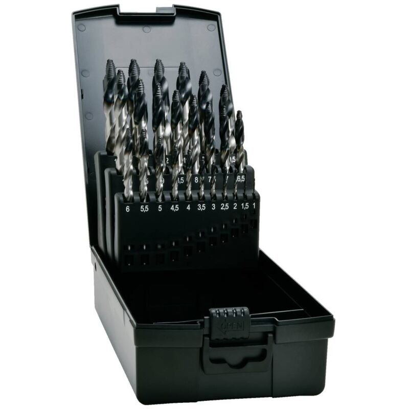 Dettagli tecnici Contenuto 1 KIT Diametro di foratura 1 mm, 1.5 mm, 2 mm, 2.5 mm, 3 mm, 3.5 mm, 4 mm, 4.5 mm, 5 mm, 5.5 mm, 6 mm, 6.5 mm, 7 mm, 7.5 mm, 8 mm, 8.5 mm, 9 mm, 9.5 mm, 10 mm, 10.5 mm, 11 mm, 11.5 mm, 12 mm, 12.5 mm, 13 mm Idoneità del materiale Alluminio, Plastica, Vetro acrilico, Legno, Acciaio dolce, Acciaio inox Materiale punte TIP TIAIN Tipo prodotto Kit punte a spirale Incluso nella consegna Kit 25 pz., 1 mm 1.5 mm 2 mm 2.5 mm 3 mm 3.5 mm 4 mm 4.5 mm 5 mm 5.5 mm 6 mm 6.5 mm 7 mm 7.5 mm 8 mm 8.5 mm 9 mm 9,5 mm 10 mm 10.5 mm 11 mm 11.5 mm 12 mm 12.5 mm 13 mm Testo tradotto automaticamente