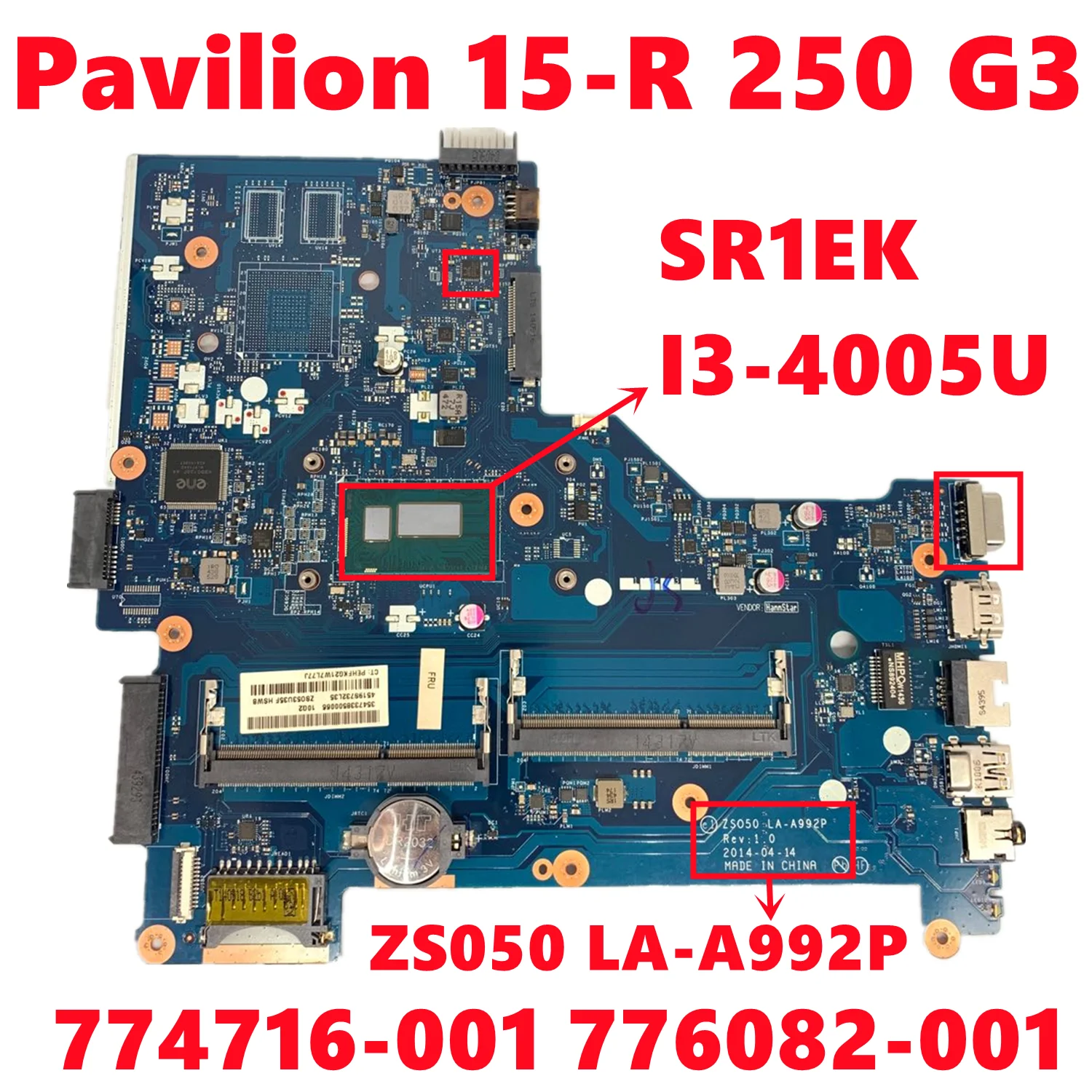 774716-001 774716-501 776082-001 776082-501 For HP Pavilion 15-R 250 G3 Laptop Motherboard ZS050 LA-A992P W/ I3-4005U Full Test