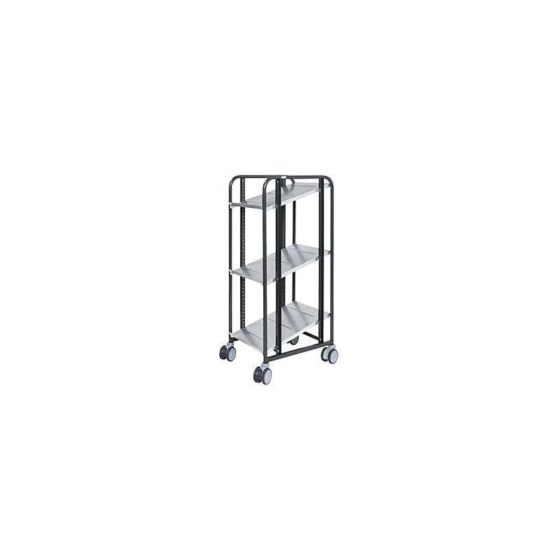 Carrello portamateriale per e-commerce, 3 ripiani, lungh. x largh. x alt. 477 x 638 x 1300 mm. Fornitura = smontato. Altezza = 1300 mm. Lunghezza = 477 mm. Larghezza = 638 mm. Materiale telaio = acciaio. Colore telaio = grigio scuro. Dotazione ruote = 4 rotelle pivottanti, di cui 2 con fermi. Diametro ruote = 100 mm. Portata = 250 kg. Numero piani = 3 pz. Lunghezza superficie di carico = 420 mm. Larghezza superficie di carico = 600 mm. Organizzazione affidabile. Flessibilità grazie a ripiani regolabili in altezza e inclinabili. Appoggio sicuro dei contenitori Euro grazie al bordino. Design ergonomico per ridurre lo sforzo fisico. Verniciatura a polvere e stabilità durature. 2 freni per un supporto sicuro durante la preparazione degli ordini. Il carrello portamateriale per l'e-commerce di Kongamek permette di prelevare le merci in modo fluido ed elaborare gli ordini in modo efficiente. Questo carrello per il trasporto di contenitori Euro, disponibile in sei varianti, ottimizza il
