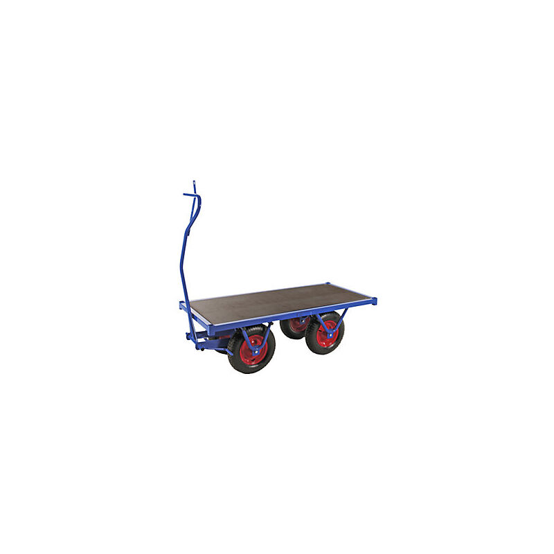 Carrello per carichi pesanti, con ruote antiforo, superficie di carico 700 x 1500 mm. Fornitura = montato. Colore = blu. Altezza di carico = 490 mm. Lunghezza superficie di carico = 700 mm. Larghezza superficie di carico = 1500 mm. Materiale superficie di carico = acciaio. Portata = 480 kg. Versione ruote = ruote antiforo. Diametro ruote = 400 mm. Tipo di prodotto = carrelli a mano. Ruote antiforo. Freno di stazionamento e impugnatura. Da tirare a mano o con trattore. Robusto carrello per carichi pesanti. Il carrello è frenato dal timone. Per questo carrello sono disponibili vari accessori. 4 ruote fisse.