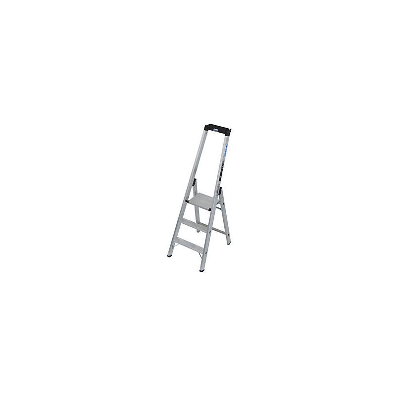 Scala a libro per carichi pesanti, salita da un lato, fino a 225 kg, 3 gradini incl. piattaforma. Fornitura = montato. Tipo di prodotto = scale a libro con gradini, salita su un lato. Altezza di lavoro = 2.7 m. Salita = su un lato. Versione da salita = gradini. N. gradini, piattaforma inclusa = 3 pz. Materiale telaio = alluminio. Materiale gradini = alluminio, striato. Profondità gradini = 80 mm. Altezza piattaforma = 700 mm. Peso = 7.1 kg. Lunghezza montanti = 1750 mm. Larghezza piattaforma = 301 mm. Profondità piattaforma = 262 mm. Colore telaio = argento. Portata = 225 kg. Altezza verticale = 1600 mm. Larghezza esterna in basso = 500 mm. Altezza totale = 1600 mm. Resistenti scale a libro a gradini con salita da un lato per impieghi gravosi fino a 225 kg. Staffa di sicurezza extra alta con ripiano portattrezzi fissato a vite e gancio per secchio integrato. Robusta piattaforma di sicurezza in alluminio con profilatura antiscivolo, sollevabile da entrambi i lati. Gradini a D profilati