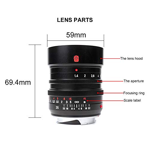 7artisans 35mm F1.4 Full Frame Focus Manuale Leica M-Mount Prime Lens per Leica SL, TL, CL Series Telecamere