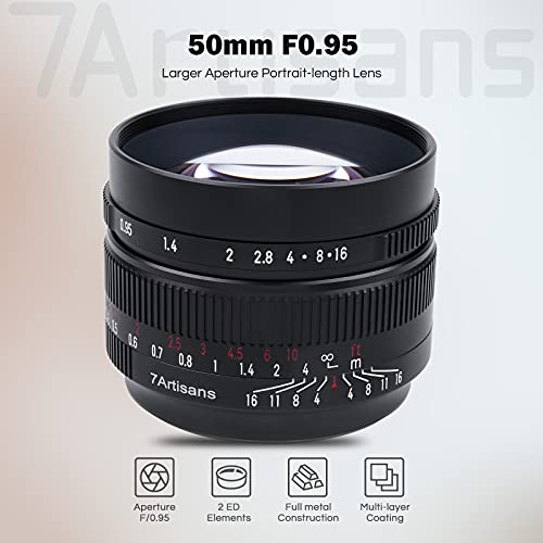 7artisans 50mm F0.95 Obiettivo manuale da con ampia apertura e lunghezza verticale, compatibile con APS-C Sony E mount fotocamere mirrorless NEX-5 NEX-C3 NEX-5N NEX-7 NEX-F3 NEX-5R NEX-3N A3000